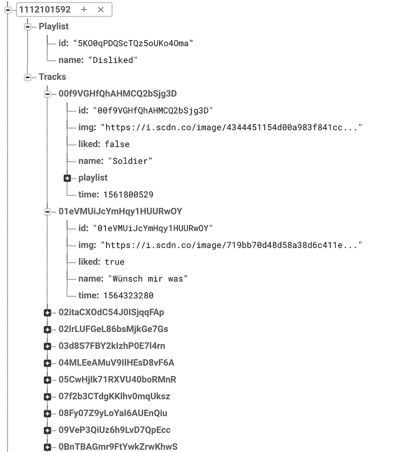 If you don’t know Firebase Realtime Database, it is basically a NoSQL cloud database. The data is stored as JSON and synchronized in realtime to every connected client. Currently, I save only the most relevant data, that is Spotify Track ID, if I liked it or not, the time I swiped the song and some additional information like name and an image for displaying in the application. Otherwise, I had to make another call to the Spotify API and I thought it would be more resourceful doing it like that.